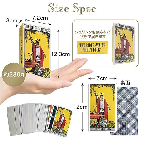 - タロットカード:78枚の決まった構成(大アルカナ22枚、小アルカナ56枚)があり、伝統的な意味がある。一般的な教科書でも絵が採用されている『ウェイト版』と書かれているものがおすすめ。慣れてきたら、他のデッキにも挑戦しよう。